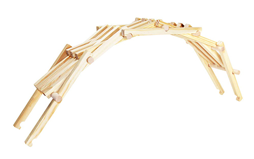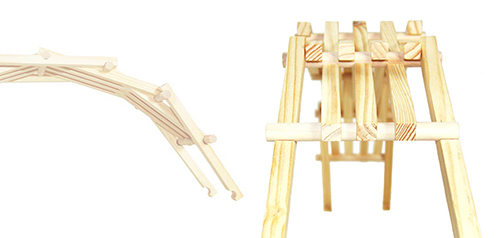 我們可看見橋身結構乃以兩組木樑,交替組合而成,下面我們便來嘗試看看用筷子及束帶,跟隨著老祖先的智慧建造出優雅的虹橋吧!