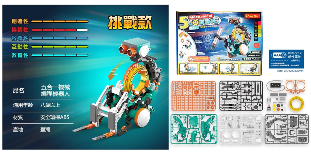 Pro’sKit 《GE-895 5合1機械編程機器人》~不用程式,機械編碼立即玩!