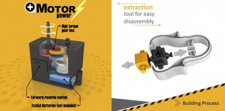 這套玩具包括一個多面桿和連接系統,共享一些獨特的幾何特徵,允許多達6面連接,是㇐個組裝、拆卸容易,透過不同的零件,可以變換多種造型的玩具,加上動力元件與馬達的應用,讓孩子將腦海中的創意發揮的淋漓盡致,不受拘束!