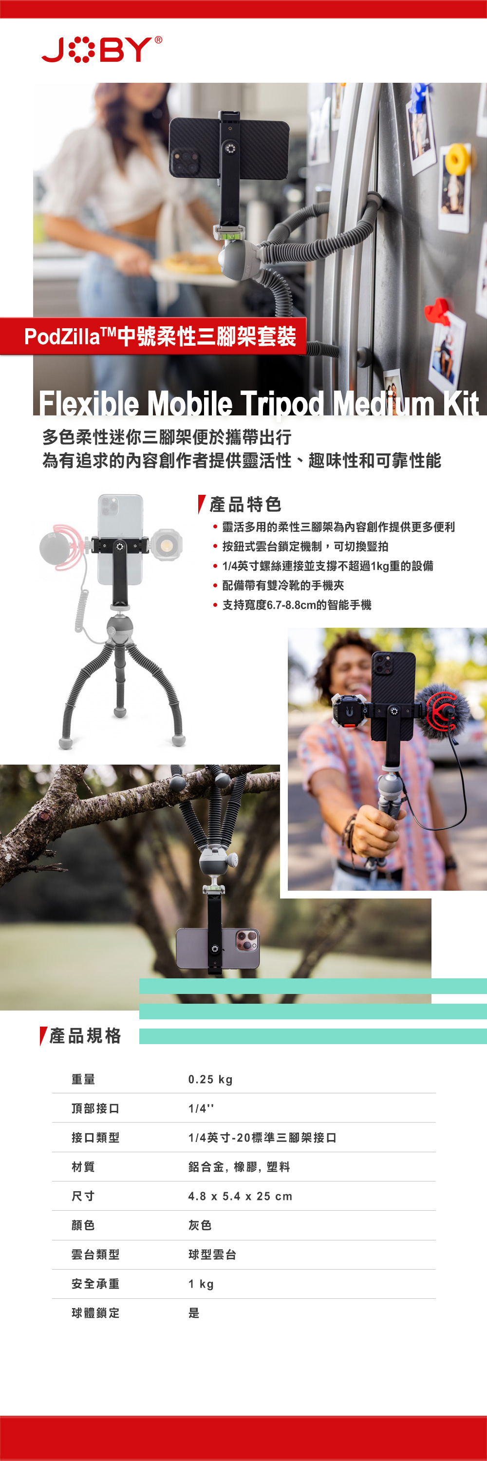 【JOBY】PodZilla 腳架套組 M 灰+BEAMO 12吋環形補光燈/直播燈光 公司貨