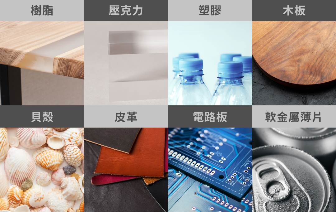 無論樹脂、塑膠、木板或是軟金屬薄片(如:鋁、銅)等材質均可鑽,發揮你的想像力來盡情創作吧!